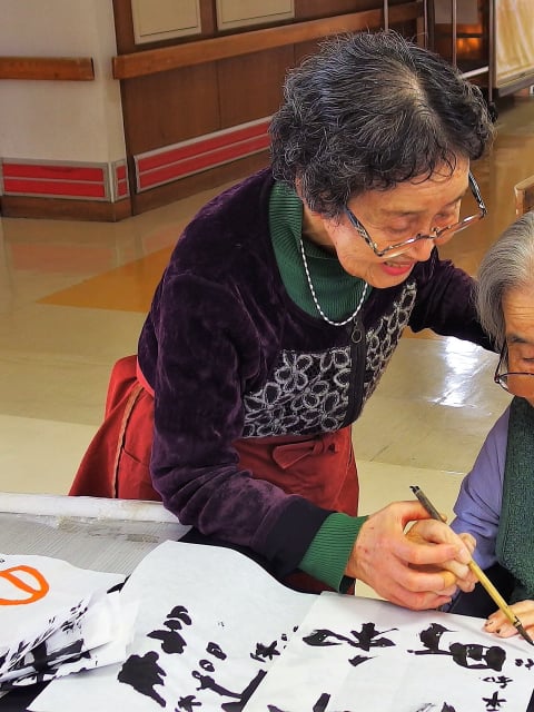 2019.6. 5イベント 書道クラブは、毎月一回開催しています。(今月は6月5日) 長年ボランティアでご指導いただいている山岸先生に感謝!!感謝!!です。 山岸先生です。 ご利用者様のみなさん、山岸先生がおいでいただける日を心待ちにしています。その方の持っている良いところを書に生かしていただきます。「その人らしい完成した味わい深い書で、とても素晴らしい。」と今日も皆さん、お褒めの言葉をいただきました。