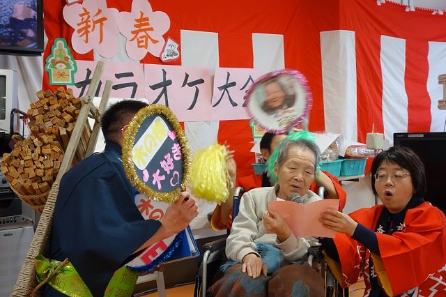 毎年、新春カラオケ大会で杏寿荘の年の始めを感じます。今年も盛大なカラオケ大会に終わり、ご利用者様に明るく豊かに過ごしていただける今年の第一歩となりました。