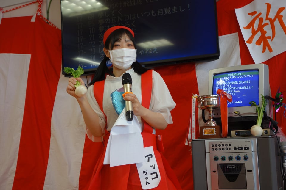 ここで再び「アッコちゃん」が「小さい白カブ」を片手に登場!!