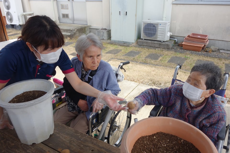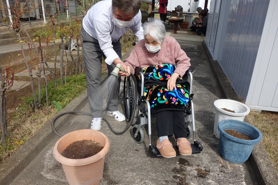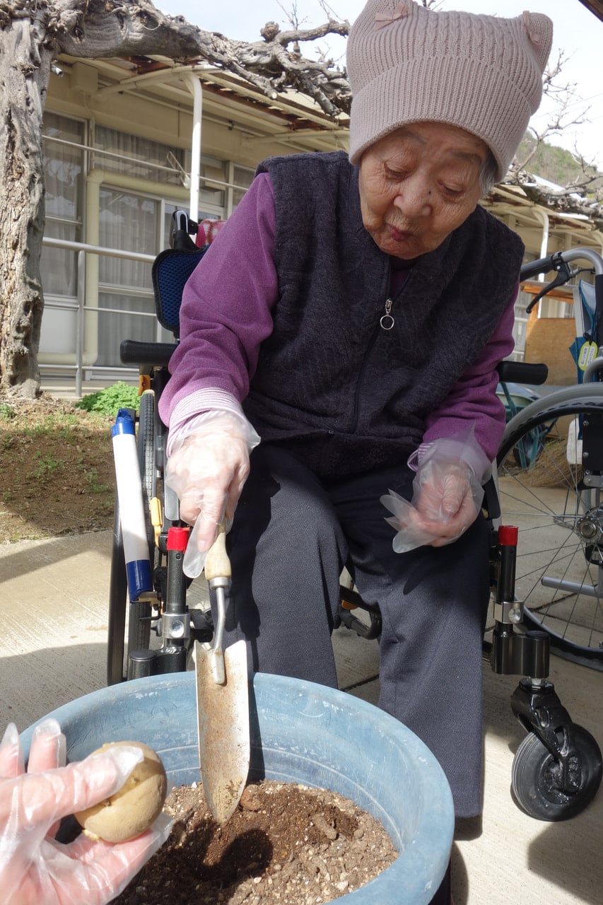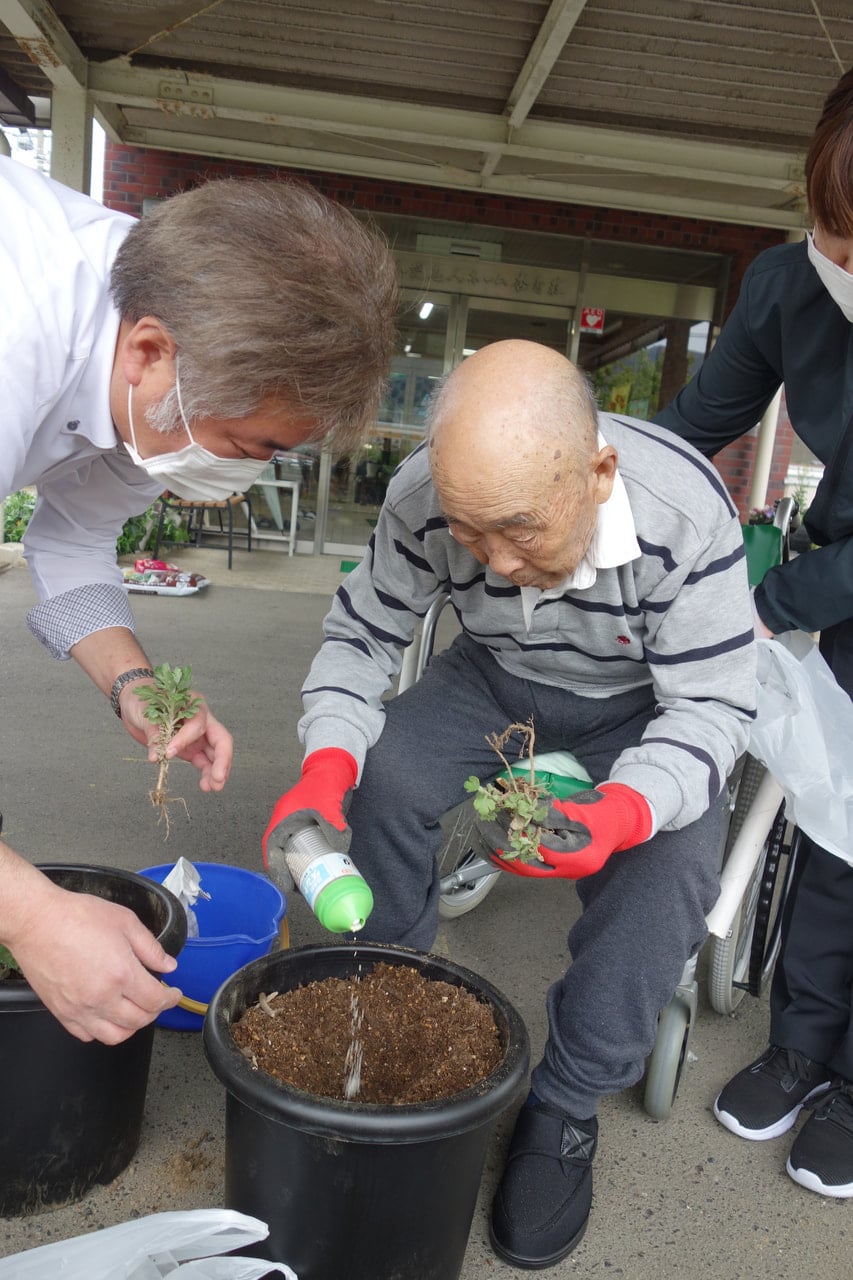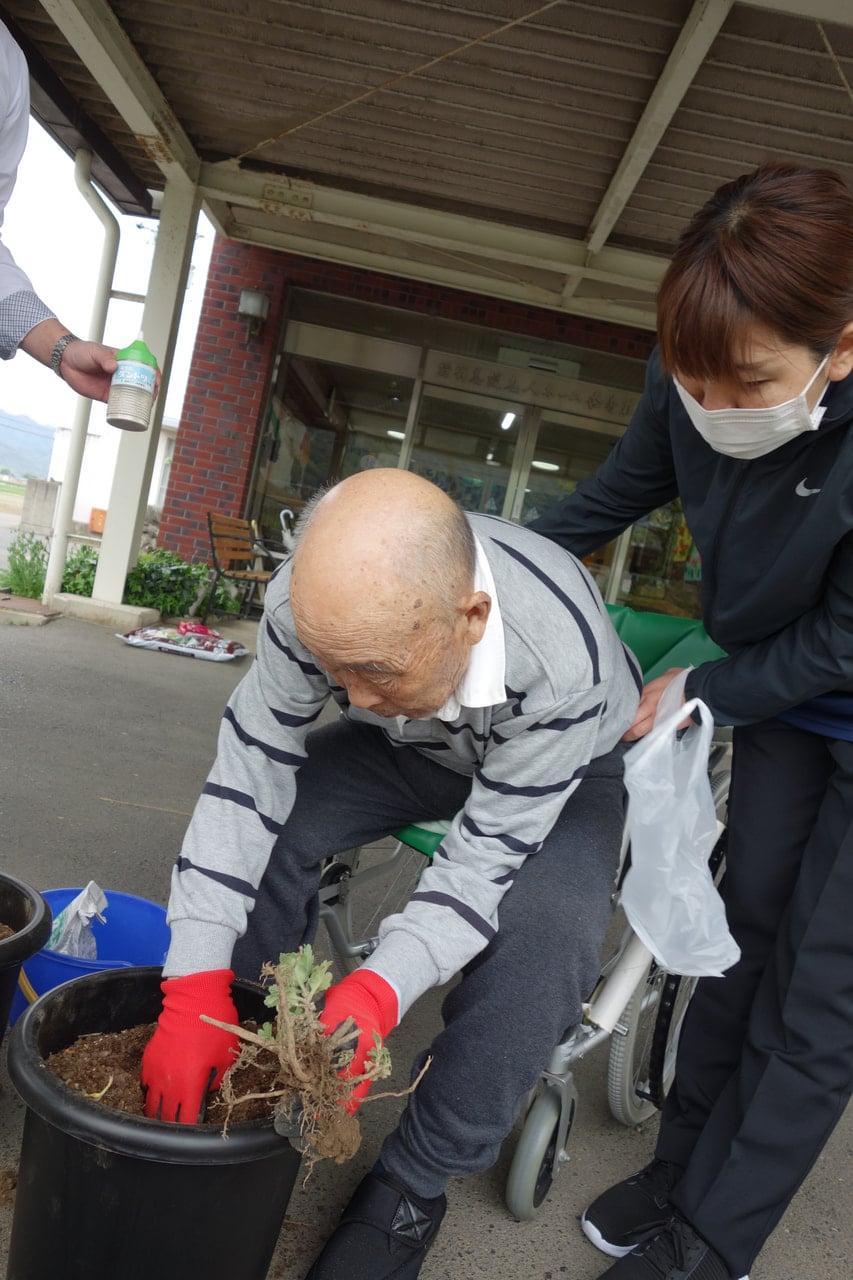 今回も入所前に畑仕事を生きがいにされていたご利用者様にご参加いただき、